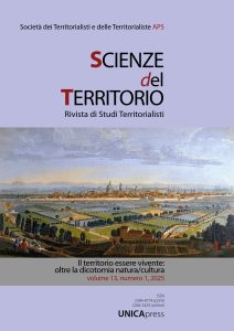È online all’indirizzo https://ojs.unica.it/index.php/sciter/issue/view/320 il vol. 13 n. 1 della Rivista Scienze del Territorio, dedicato al tema “Il territorio essere vivente: oltre la dicotomia natura/cultura” e curato da Annalisa Giampino e Sergio Serra in collaborazione col PRIN 2022 PNRR BioCode. In conformità alla politica Diamond Open Access della Rivista, tutti i contenuti sono accessibili gratuitamente navigando a partire dalla home page del numero. Grazie a chi vi ha collaborato, auguri al nuovo nato per una prospera diffusione e a tuttə voi per un nuovo anno sereno e pieno di letture interessanti.